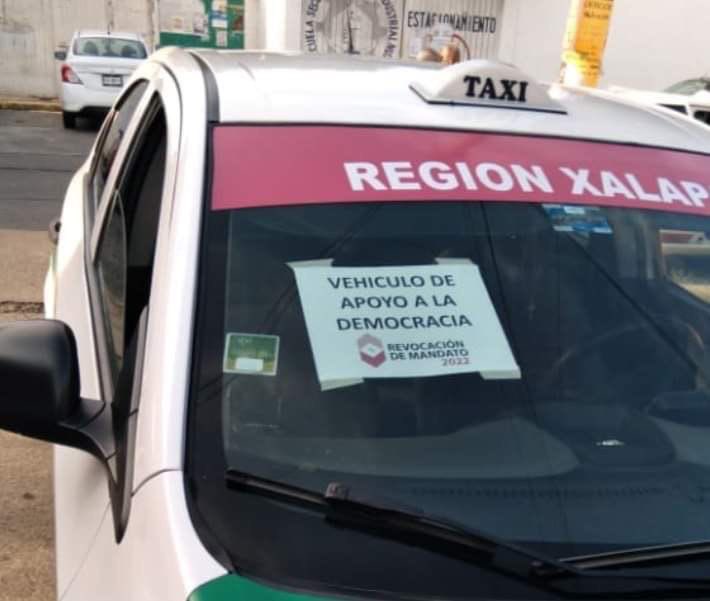 En Veracruz también hubo el reporte de taxis acarreando personas, la mayoría tenían calcomanías de AMLO en sus medallones que los identificaban.