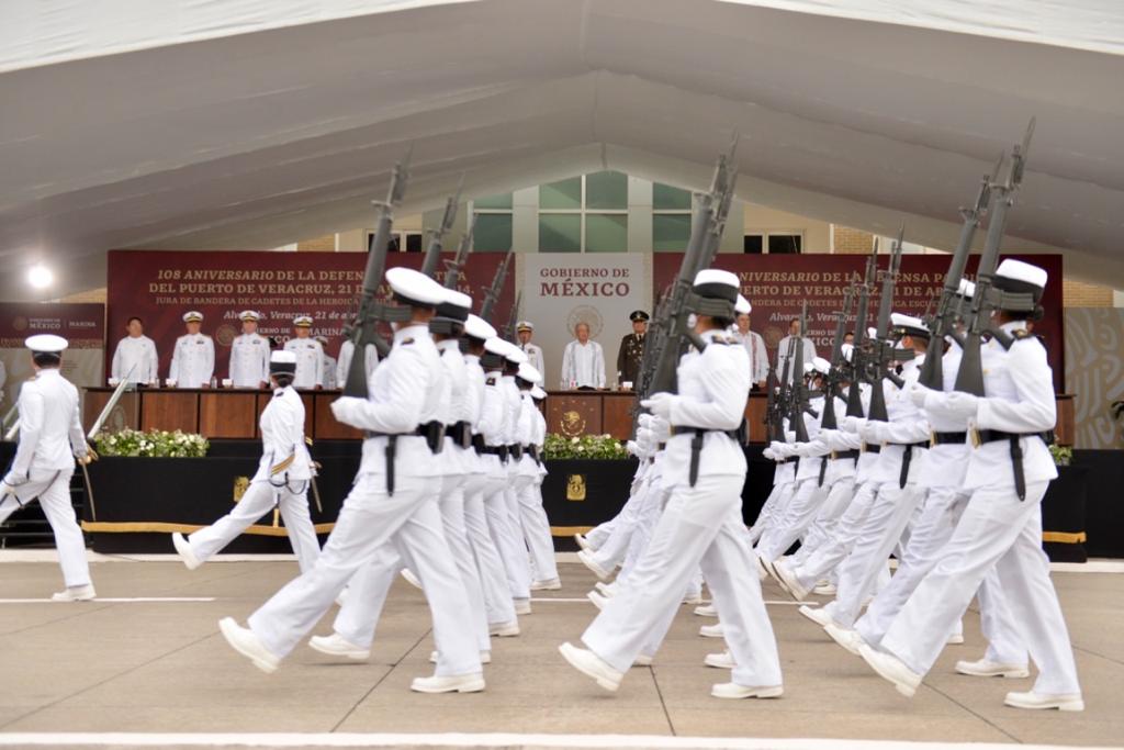 Tras el toque de silencio y la salva de honor tomó protesta a los cadetes de reciente ingreso, para luego iniciar el desfile con que se recuerda aquel 21 de abril de 1914, cuando el teniente José Azueta y el cadete Virgilio Uribe Robles perecieron enfrentando al enemigo, siendo ejemplos de patriotismo, valor y entrega para futuras generaciones. A raíz de estos acontecimientos Veracruz fue considerado heroico por cuarta vez en la historia nacional.