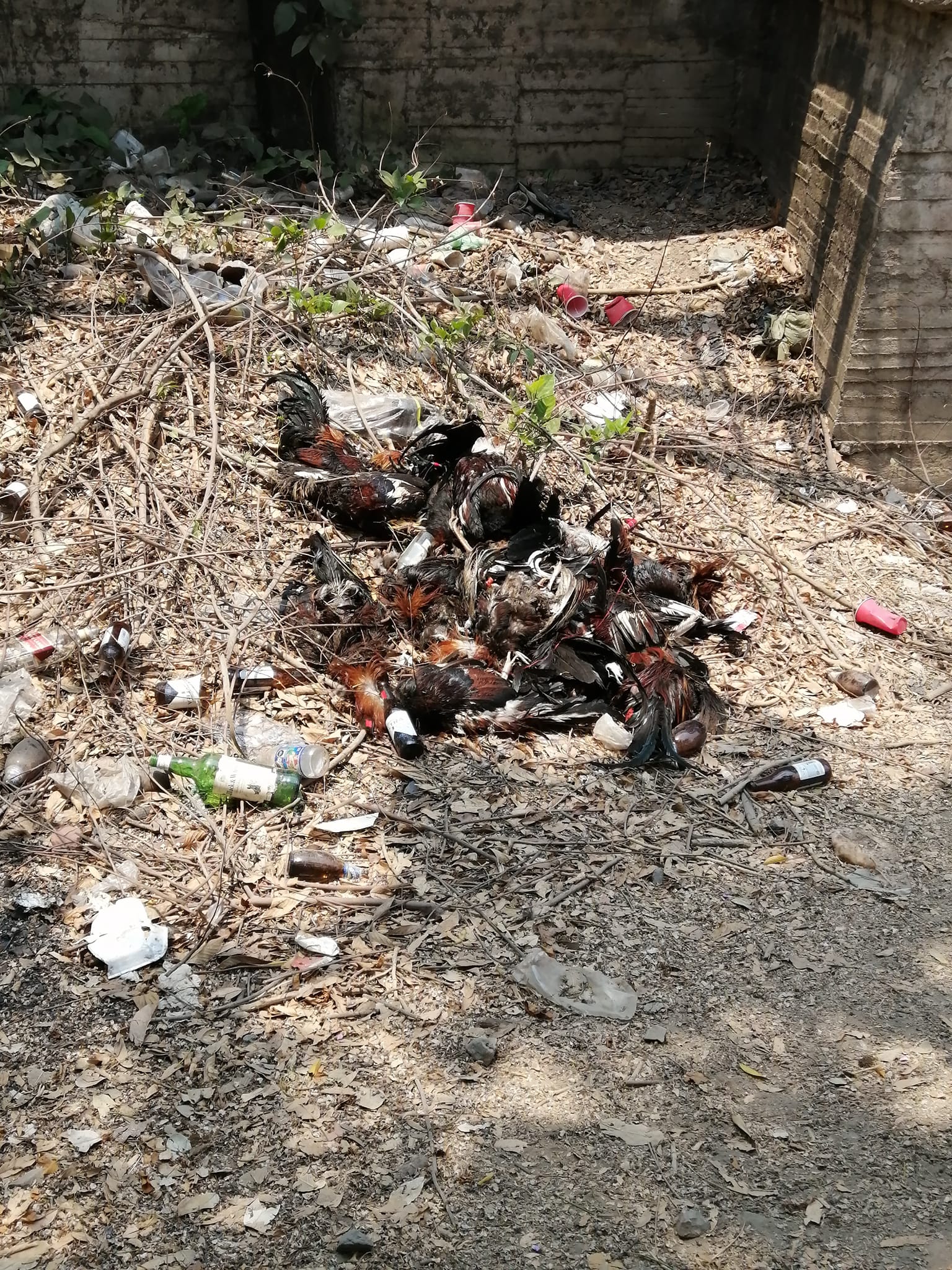 Según posteó la misma edil, eran unos 45 gallos colorados de pelea que estaban muertos ya en estado de descomposición, por lo que procedieron a cavar un hoyo para enterrarlos.