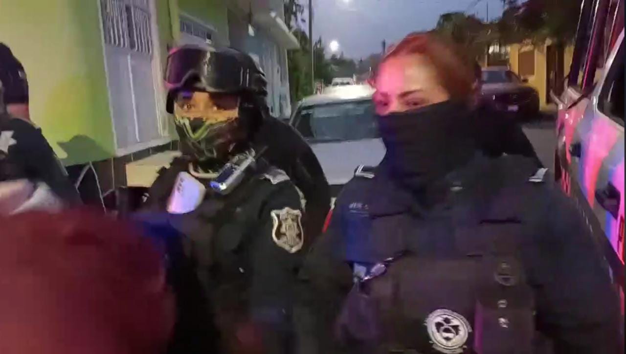 Durante todo esto, una mujer policía golpeó al reportero de nota roja, Alfonso Parra, que en el jaloneo turo su teléfono celular que le sirve como su herramienta de trabajo.