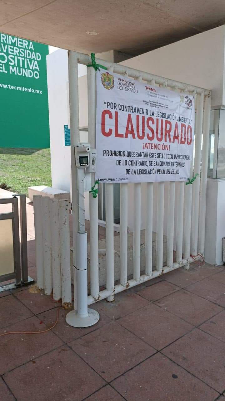 Alvarado, Ver. La Procuraduría de Medio Ambiente del estado de Veracruz colocó sellos de clausura en la entrada de la Universidad Tec Milenio ubicada sobre el bulevar Riviera Veracruzana, en Alvarado.
