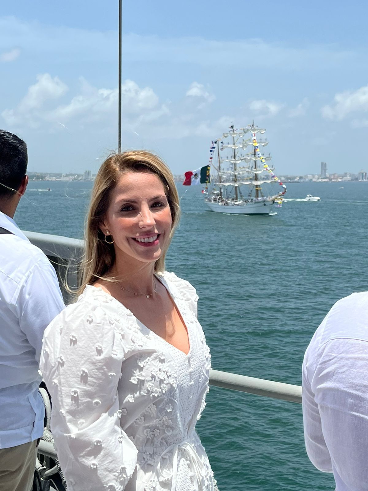 La Marina-Armada de México invitó a las autoridades locales y estatales al pase de revista a los cuatro veleros (Brasil, Uruguay, México y Argentina) que estaban en formación listos para ingresar al Muelle de la “T”.